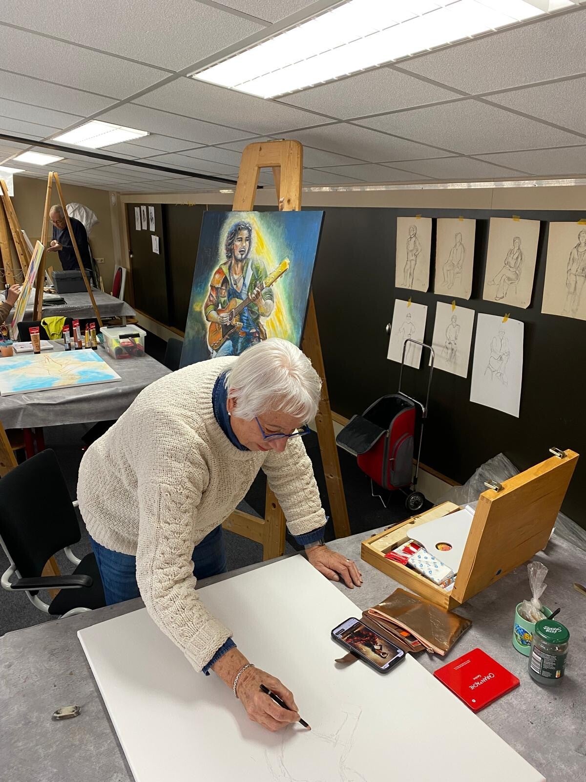 Onze gediplomeerde docenten, Angela Delisse en Marion van de Schans, zorgen voor uitdagende lessen. We werken met verschillende technieken en materialen zoals houtskool, potloden, inkt, neocolor, aquarelpotloden en aquarelverf, pastelkrijt, acryl, ook water gedragen olieverf. We schilderen of tekenen op doek, papier, hout en andere materialen.